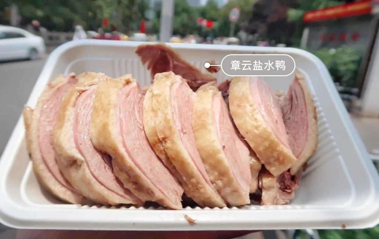 南京鸭子店太多了!这家我工作日去的,排了15分钟,大多是本地人,一买好几只鸭子切了1/4只烤鸭16块。鸭肉紧实,挺香的,没有鸭骚味。烤鸭本身几乎没有味道,要泡在卤汁里吃,卤汁是甜咸的,很对我口味