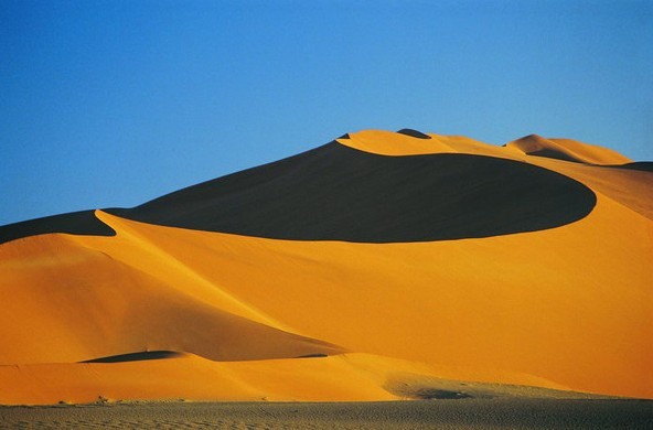 在世界各大沙漠中,塔克拉玛干沙漠是最神秘、最具有诱惑力的一个。沙漠中心是典型大陆性气候,风沙强烈,温度变化大,全年降水少。塔克拉玛干沙漠流动沙丘的面积很大,沙丘高度一般在100-200米,最高达300米左右。沙丘类型复杂多样,复合型沙山和沙垄,宛若憩息在大地上的条条巨龙,塔型沙丘群,呈各种蜂窝状、羽毛状、鱼鳞状沙丘,变幻莫测。
