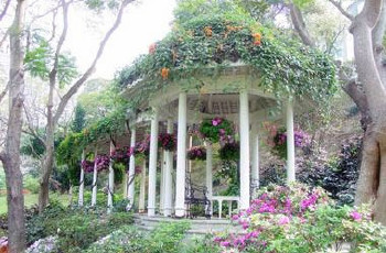 香港礼宾府门前有一片草坪,常年绿草如茵,背后花园广种植物,繁花似锦,春天杜鹃花盛放,争妍斗丽,满园春色。