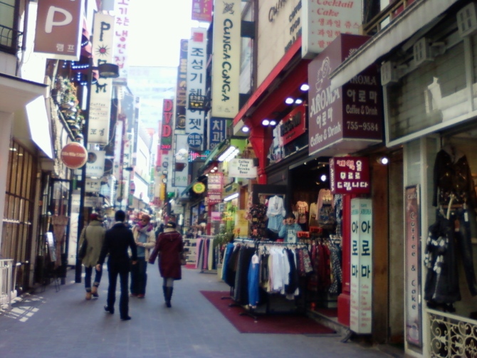 一般说来,明洞大街是指从地铁4号线明洞站到乙支路、乐天百货店之间约1公里长的街道。这里不同于南大门和东大门,其特点是集中了许多质量上乘的品牌产品。这里一天的移动人口为平均是150万,周末更会多达200万。明洞所代表的大韩民国“马路文化”,吸引了众多外国游客的脚步。在橱窗内我们很容易看到用韩语书写的欢迎光临和日语书写的“欢迎光临”。